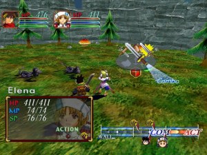 В бою каждый персонаж может выбирать из списка действий, которые включают «комбо-атаки» (стандартная команда атаки), специальные способности/магия, «критический удар», охрана, уклонение и побег. Критические удары - это более слабые версии комбинаций атак с тем преимуществом, что они могут блокировать действия противника. Это отчасти зависит от положения персонажа на панели действий, отображаемой в нижней части экрана, где показано время действия каждого персонажа (и врага) в битве. Некоторые магические заклинания и специальные способности также способны блокировать действия противника, хотя их выполнение занимает больше времени, чем обычные атаки. Как комбо-атаки, так и критические атаки требуют, чтобы атакующий подбежал к врагу, чтобы выполнить действие. Это сильно зависит от индивидуального движения персонажа, а также от других персонажей, выступающих в качестве препятствий на экране. Успешно побеждая врагов в бою, вы получаете очки опыта, очки силы, магические очки, золото и предметы.
